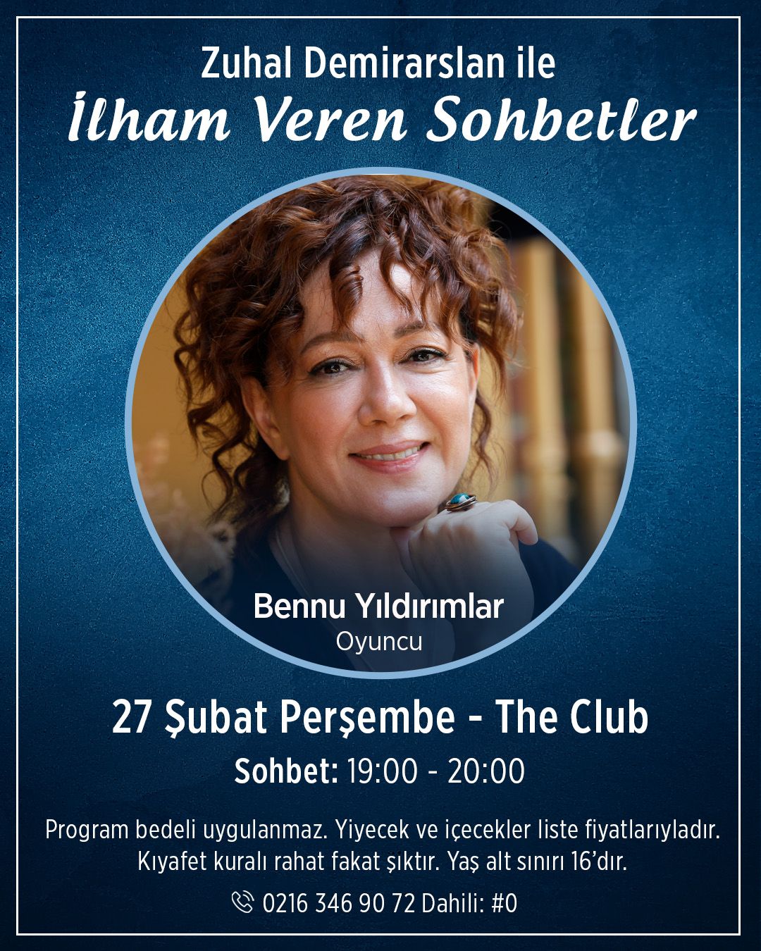 27 Şubat Perşembe günü Zuhal Demirarslan'ın konuğu Bennu Yıldırımlar..