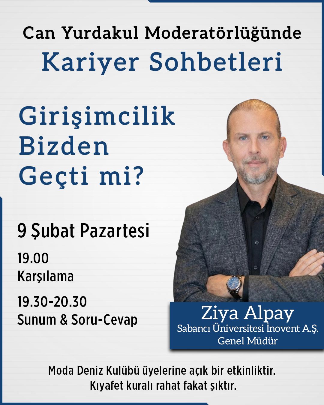 | Özgür Avyüzen Davet & Ziyafet Ofis Yöneticisi oavyuzen@modadenizkulubu.org.tr Dahili: 55 veya 27 | Erol Çöktü Ass. MdH ecoktu@modadenizkulubu.org.tr Dahili: 62 veya 49 |