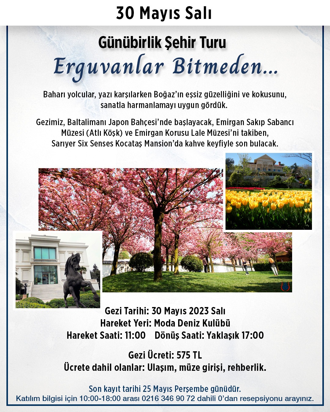 Katılım bilgisi ve kayıt için Resepsiyonu arayabilirsiniz..