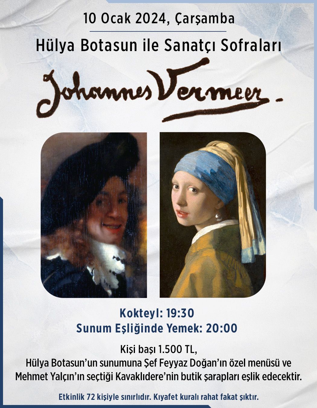 10 Ocak Çarşamba akşamı Hülya Botasun ile Sanatçı Sofraları ''Johannes Vermeer '' etkinliğimize bekliyoruz...