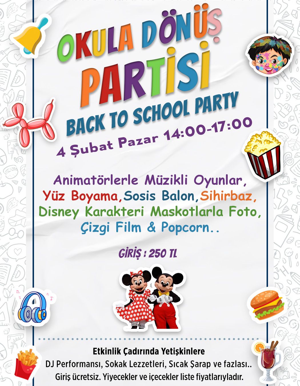 04 Şubat Pazar günü Okula Dönüş Partisine bekliyoruz..