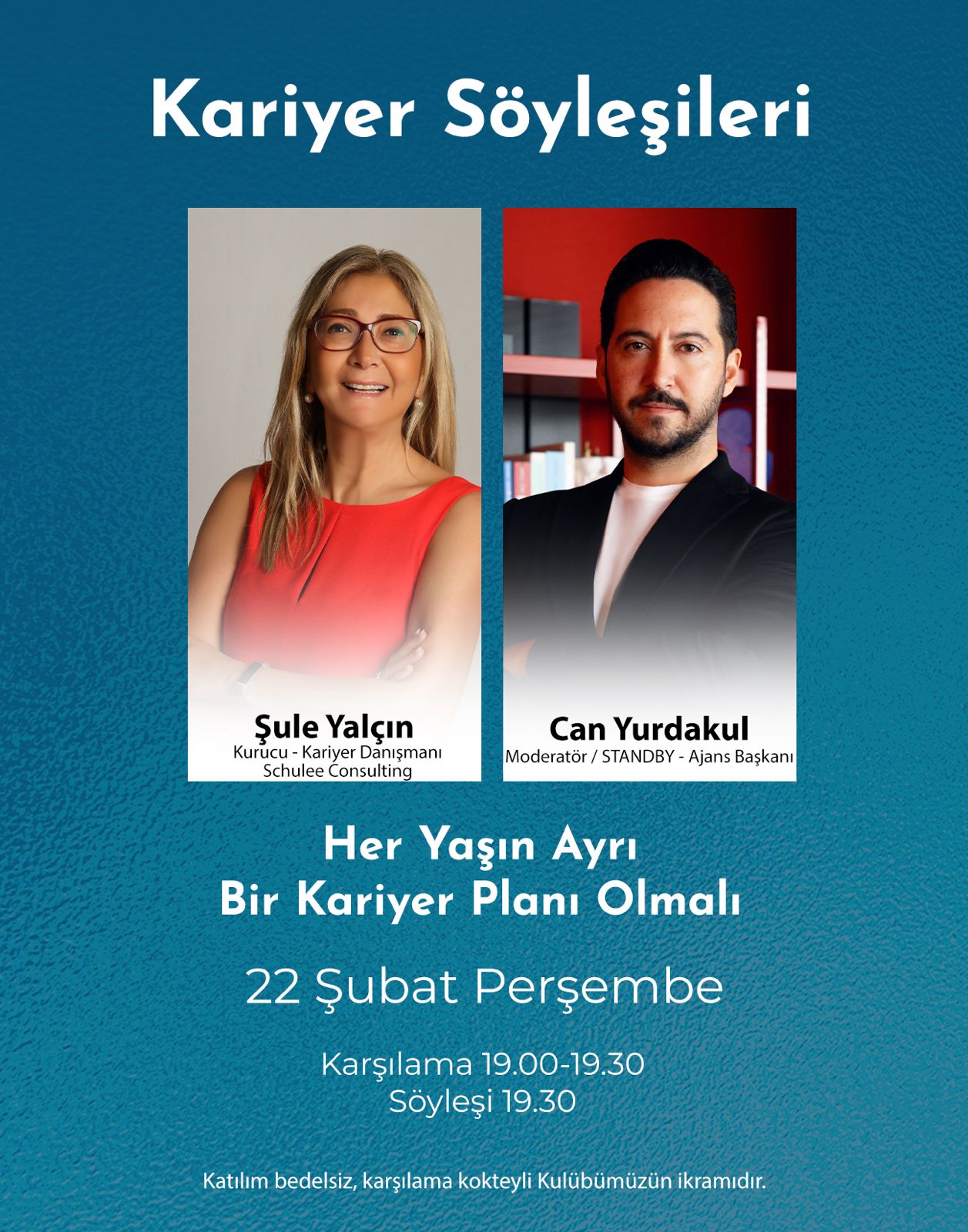 22 Şubat Perşembe akşamı "Her Yaşın Ayrı Bir Kariyer Planı Olmalı" söyleşimize bekliyoruz...