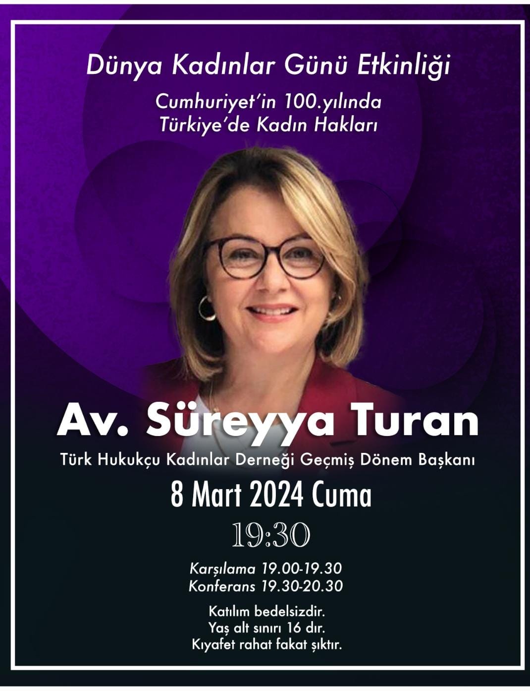 8 Mart Cuma günü Av.Süreyya Turan ile "Cumhuriyetin 100. Yılında Türkiye'de Kadın Hakları" sohbetimize bekliyoruz..