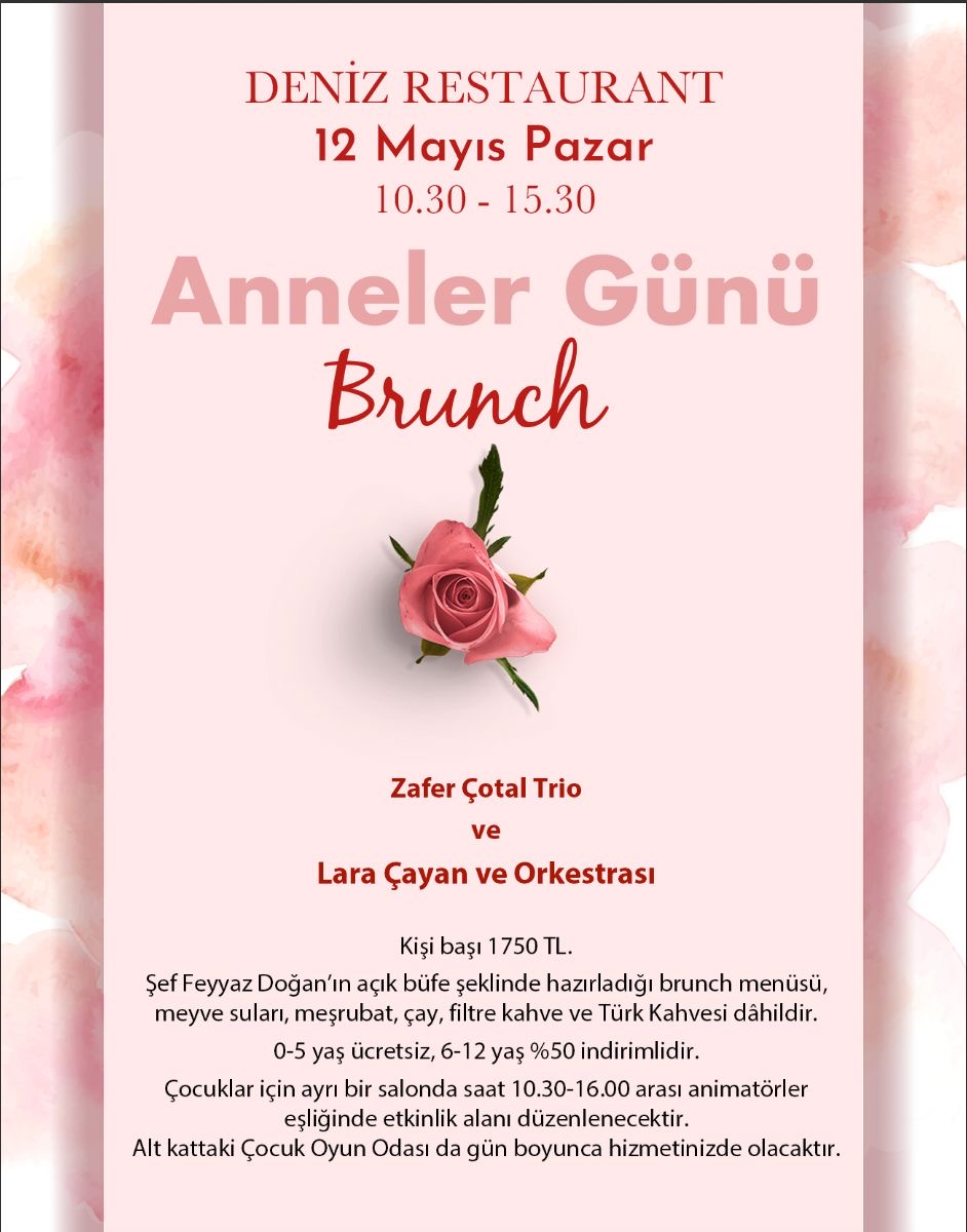 Zafer Çotal Trio ve Lara Çayan Orkestrası eşliğinde özel Anneler Günü Brunchımıza bekliyoruz..